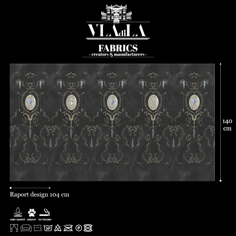 Royal Animals Black Materiał tekstylny Wnętrza to synonim sztuki, kiedy składają się z elementów tworzonych z pasją. A my infuzujemy pasję w cały proces twórczy. Od pomysłu i moodboardu po ręcznie rysowane szkice wykonane przez oddanych artystów. Ostatni krok, produkcja, to realizacja tej pasji. Dlatego House of VLAdiLA oferuje tapety, meble i tekstylia będące synonimem sztuki. Fascynuje nas moc designu do przekształcania przestrzeni w głęboko osobiste sanktuaria. Oraz wpływ, jaki mają na tych, którzy je zamieszkują. Intymny dom, lustrzany dom, jest źródłem inspiracji. Jest pokarmem dla duszy, gdy świat na zewnątrz staje się przytłaczający. Aby przekształcić swoją przestrzeń w sanktuarium komfortowego luksusu, nie wolno pomijać głęboko zmysłowego doświadczenia, jakie musi ona zapewniać. Za pomocą wzoru tekstylnego Royal Animals Black, zaznasz pełnego relaksu poprzez swoje zmysły. W ten sposób całe Twoje jestestwo może poddać się stanowi błogości. Dlatego mocno wierzymy, że każda przestrzeń potrzebuje wizualnej tekstury. W naszym przypadku oznacza to ciężkie fałdy aksamitu. Wzór tekstylny Royal Animals Black uchwyca właśnie to. Jego bogata powierzchnia ma coś z wyrafinowania niesionego przez czas. Od godności szlachetnej elegancji: luksus odczuwalny, bez potrzeby jego komunikowania. Materiał tekstylny na zasłony Możesz je postrzegać jako łącznik między wnętrzem a światem zewnętrznym. Historia rysowana przez naszych artystów popłynie w ciężkich fałdach na podłodze, okalając okna eleganckimi nitkami narracyjnymi. Materiał tekstylny na poduszki Stwórz zaskakujący akcent kolorystyczny lub kontynuuj opowieść swojej tapety i zasłon. Ciesz się aksamitnym dotykiem designerskich dekoracyjnych poduszek. Materiał tekstylny na tapicerkę Meble House of VLAdiLA redefiniują wystrój wnętrz. Przestrzeń będzie dopełniona przez wielkoformatowe historie, tworzone z pasji do sztuki. Wszystko to na tle bogatego aksamitu, który otula całą powierzchnię mebla.
