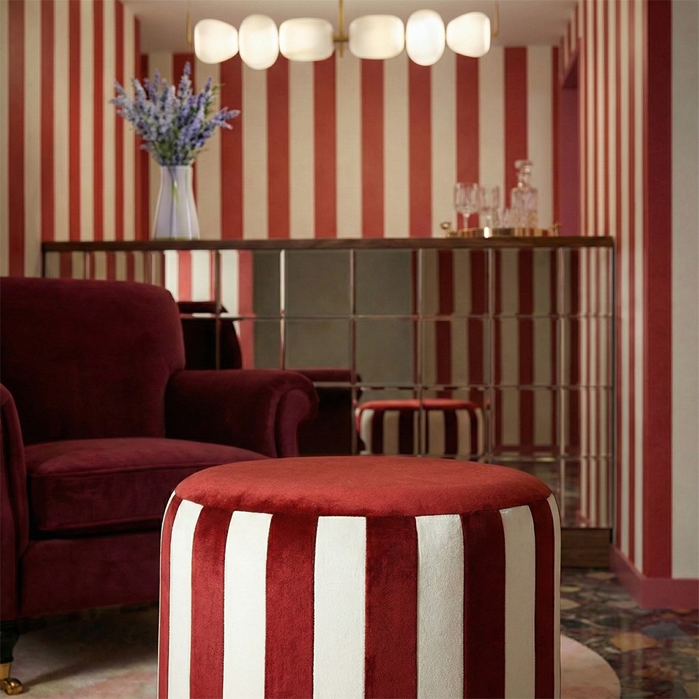 Taburetul Mira Gala este o piesă de design contemporan care surprinde prin simplitatea sofisticată și forța vizuală a imprimeului său. Tapițat în dungi verticale roșu intens și alb, acest taburet devine un accent grafic puternic în orice interior, evocând eleganța spectacolelor de gală și energia vibrată a decorurilor teatrale.