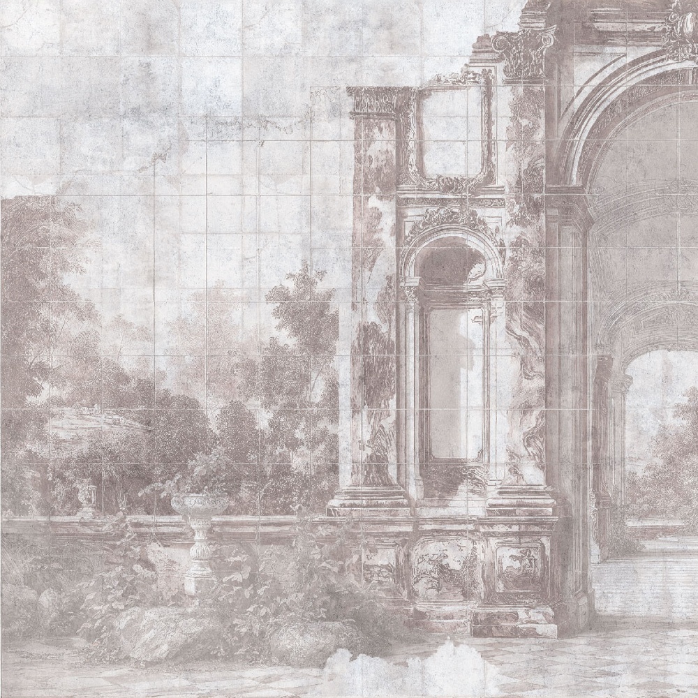 Pictat în tonuri estompate de terracotta, fildeș și nuanțe subtile de smarald, designul surprinde atât forța, cât și delicatețea. VLAdiLAartizanii infuzează dramă barocă în fiecare coloană și curbă, realizând manual un tapet care răsună cu autoritate atemporală.