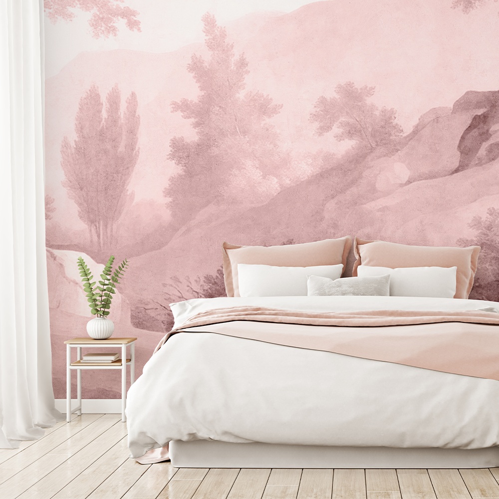Ethereal Veil Rose se afirmă ca mural lucrat manual, tapet de lux, acoperire artistică pentru pereți și decor atemporal — o capodoperă a opulenței subtile.