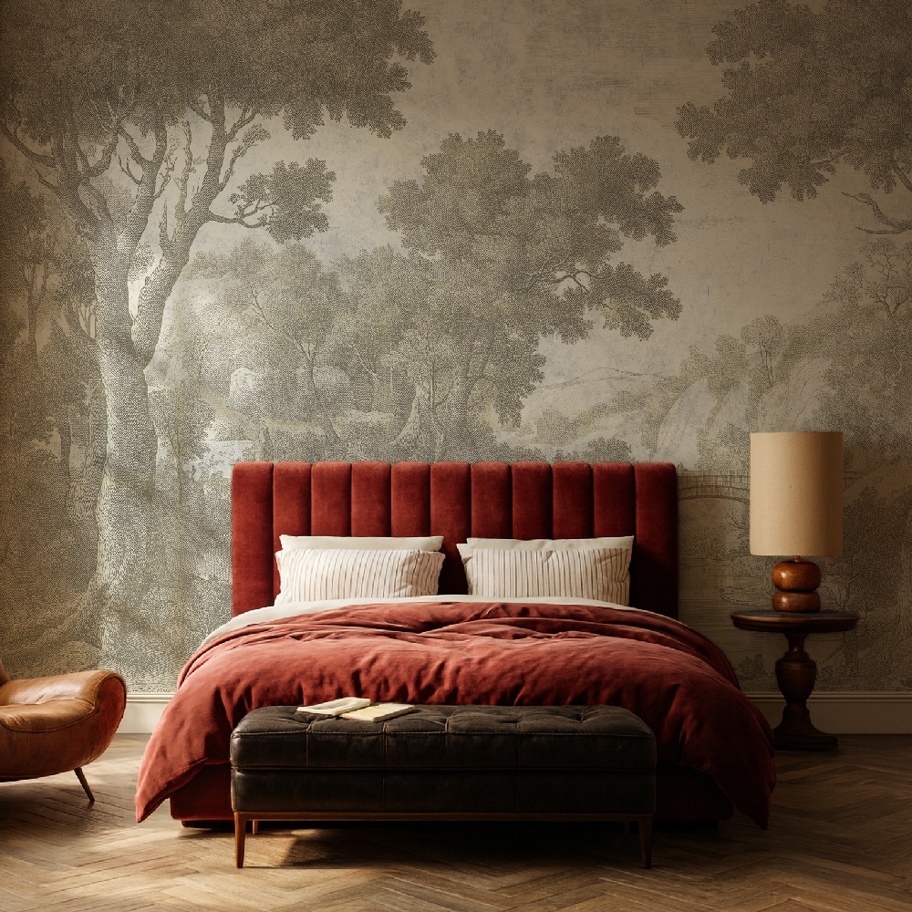 Memory Bridge Cream se afirmă ca mural lucrat manual, tapet artistic, tapet de lux și design atemporal — o dovadă a eleganței aristocratice.