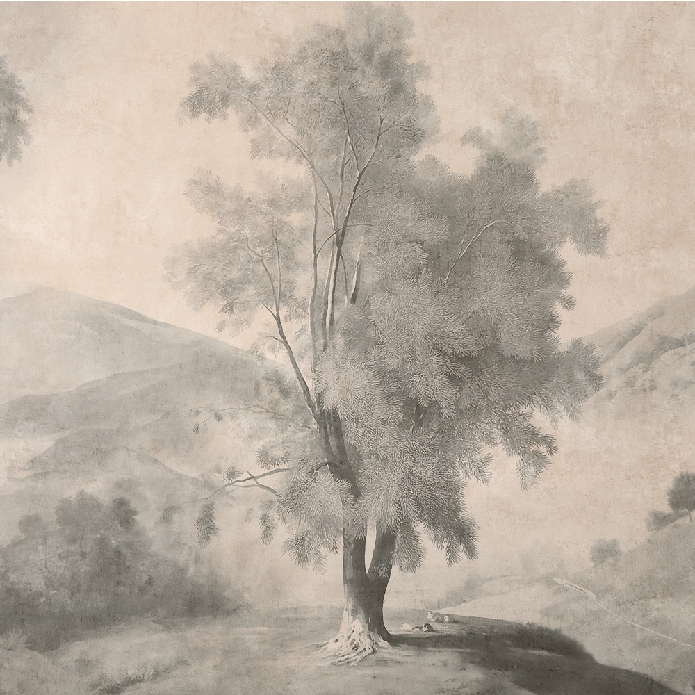 Tapetul Solitary Tree Cream întruchipează măreția tăcută a naturii care stă singură, atemporală, dar fragilă. Este o meditație asupra forței, rezistenței și frumuseții singurătății. Un copac devine simbol al rezilienței și al grației.