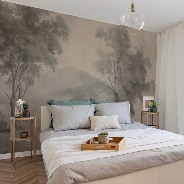 Pictat manual în nuanțe liniștite de verde, terracotta pământiu și tonuri delicate de albastru, designul emană serenitate și măreție. VLAdiLA artizanii surprind detaliile fine ale scoarței, ramurilor și cerului, infuzându-le cu profunzime barocă și o melancolie poetică. Rezultatul: un mural care transformă interioarele în refugii contemplative.