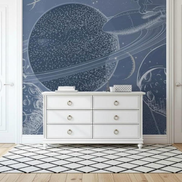 Modelul de tapet The Outer Space Blue face parte din colectia Sky Travel, descriind o lume a inocentei in care orice iti doresti devine posibil. Tot ce trebuie sa faci este sa te deschizi catre necunoscutul magic al designului. Paleta cromatica este bogata si diversa. Tonurile atent selectate contribuie la atmosfera fantastica a acestui tapet. Realizat cu infinita atentie la detalii, acesta infuzeaza spatiul cu o divina stare de bine. Relaxare si entuziasm, dinamism si energie pozitiva. Cele mai frumoase povesti vor izvori chiar din inima spatiului tau. Caci peretii vor deveni povestitori, ocrotitori magici ce vor veghea asupra celui mic.